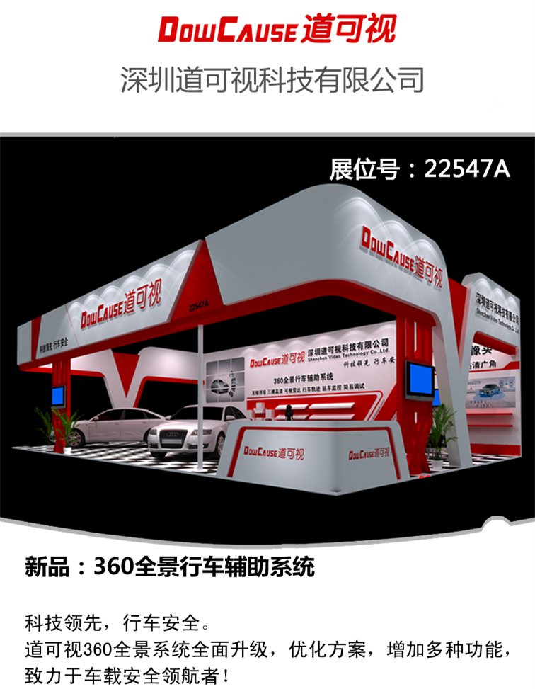 2015年1月16日,第十一屆深圳國際汽車改裝服務業(yè)展覽會盛大開幕,迎來了國內(nèi)各地的參展商和采購商。深圳道可視科技有限公司精心準備的各種展品在展會現(xiàn)場獲得了市民以及采購商的一致好評。特別是我們的360度全景泊車影像系統(tǒng)備受關(guān)注,受到了各界人士的駐足。這一次我們主要的展品有360度全景泊車影像系統(tǒng)、智能倒車軌跡、專車專用攝像頭。這三類展品是我們公司專門針對汽車電子行業(yè)設計生產(chǎn)的主打產(chǎn)品,不僅在國內(nèi)屬于獨創(chuàng),在國際上也是具有較強競爭力。