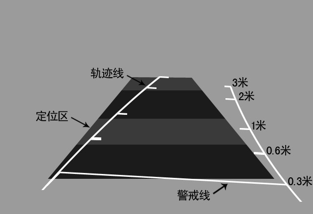 定位區(qū):當車輪方向打正時,車身將會經(jīng)過的位置,用于泊車位置參考。