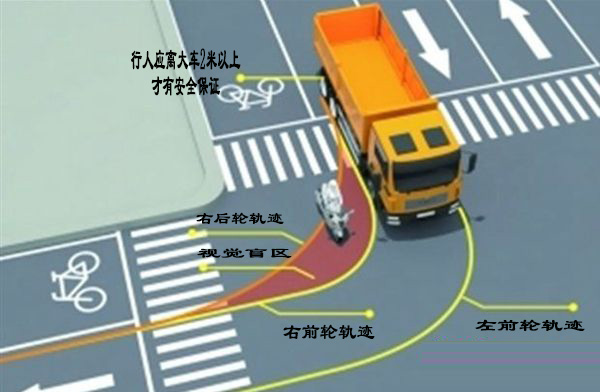 拐彎時(shí),前內(nèi)輪轉(zhuǎn)彎半徑與后內(nèi)輪轉(zhuǎn)彎半徑之差,形成盲區(qū)?,F(xiàn)在我們開發(fā)出像大貨車這種大型車的360度全景。雖然大貨車有了這套行車輔助系統(tǒng),還是要提醒:行人和車輛應(yīng)該遠(yuǎn)離2米以上的距離。