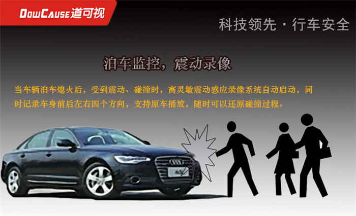 車輛無故被劃,找誰負責,車輛被撞,找不到肇事者什么辦,泊車后的安全問題誰來解決?道可視360度全景行車輔助系統(tǒng)還擁有碰撞感應錄像功能,當車輛收到震動碰撞時,自動啟動錄像功能,前后左右四路攝像頭同時同步錄像。清楚的記錄下碰撞過程,同時能夠自動鎖定當前震動引起的錄像文件。不用擔心錄像文件被覆蓋,被刪除,隨時可以還原碰撞過程。