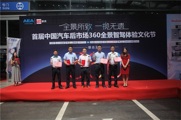 在此次秋季展中還開展了“首屆中國汽車后市場360全景智駕體驗(yàn)文化節(jié)”,深圳道可視科技有限公司劉經(jīng)理(左四)出席文化節(jié)開幕。