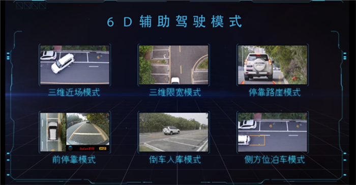 ◆6D輔助駕駛模式。道可視在2018年新增的6D輔助駕駛模式,包含三維近場(chǎng)模式、三維限寬模式、停靠路崖模式、前停靠模式、倒車(chē)入庫(kù)模式、側(cè)方位泊車(chē)模式,徹底屏棄掉市場(chǎng)上的其他3D模式,用簡(jiǎn)單方便實(shí)用的功能,輔助駕駛者順利通過(guò)行車(chē)障礙、過(guò)限寬、極限??柯费碌榷喾N復(fù)雜多變的行車(chē)環(huán)境及道路。