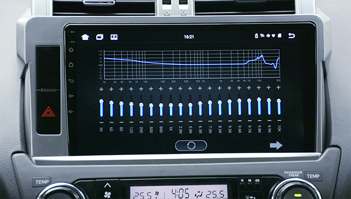 前文提到,道可視S3+音樂(lè)車機(jī)采用的是前裝車規(guī)級(jí)高端版24位DSP模組,它擁有36段EQ調(diào)節(jié),對(duì)于懂得調(diào)音的車主而言,它提供了可針對(duì)各個(gè)音域進(jìn)行調(diào)節(jié)的專業(yè)操控。