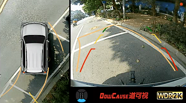 在側(cè)邊停車或倒車入庫時(shí),道可視360°全景行車輔助系統(tǒng)通過“倒車影像”+“精準(zhǔn)輔助線”的方式,精準(zhǔn)計(jì)算出行車軌跡,顯示車輛泊車時(shí)車身所經(jīng)過的位置,輔助駕駛員準(zhǔn)確輕松泊車,避免事故。