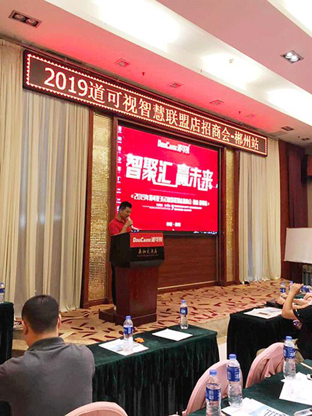 隨后,針對于大家所關注的“智慧聯(lián)盟店”,道可視大區(qū)經理伍招權進行了重點介紹,他從市場體系、加盟方案、銷售模式和加盟優(yōu)勢四個維度進行了詳細宣講,引起現(xiàn)場終端門店的極大興趣。