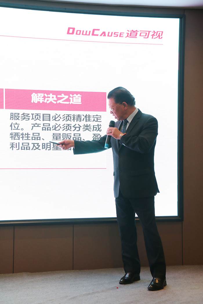針對(duì)當(dāng)下終端門店運(yùn)營者所面臨的種種困惑,蔡老師也提出了解決之道,他指出門店有服務(wù)項(xiàng)目必須精準(zhǔn)定位,產(chǎn)品必須分類成犧牲品、量販品、盈利及明星產(chǎn)品,同時(shí),如果說門店有20%的員工劣根性很強(qiáng),無論如何都無法改變,老板就必須使出殺手锏,不能再將這樣的員工留在店內(nèi)等等。
